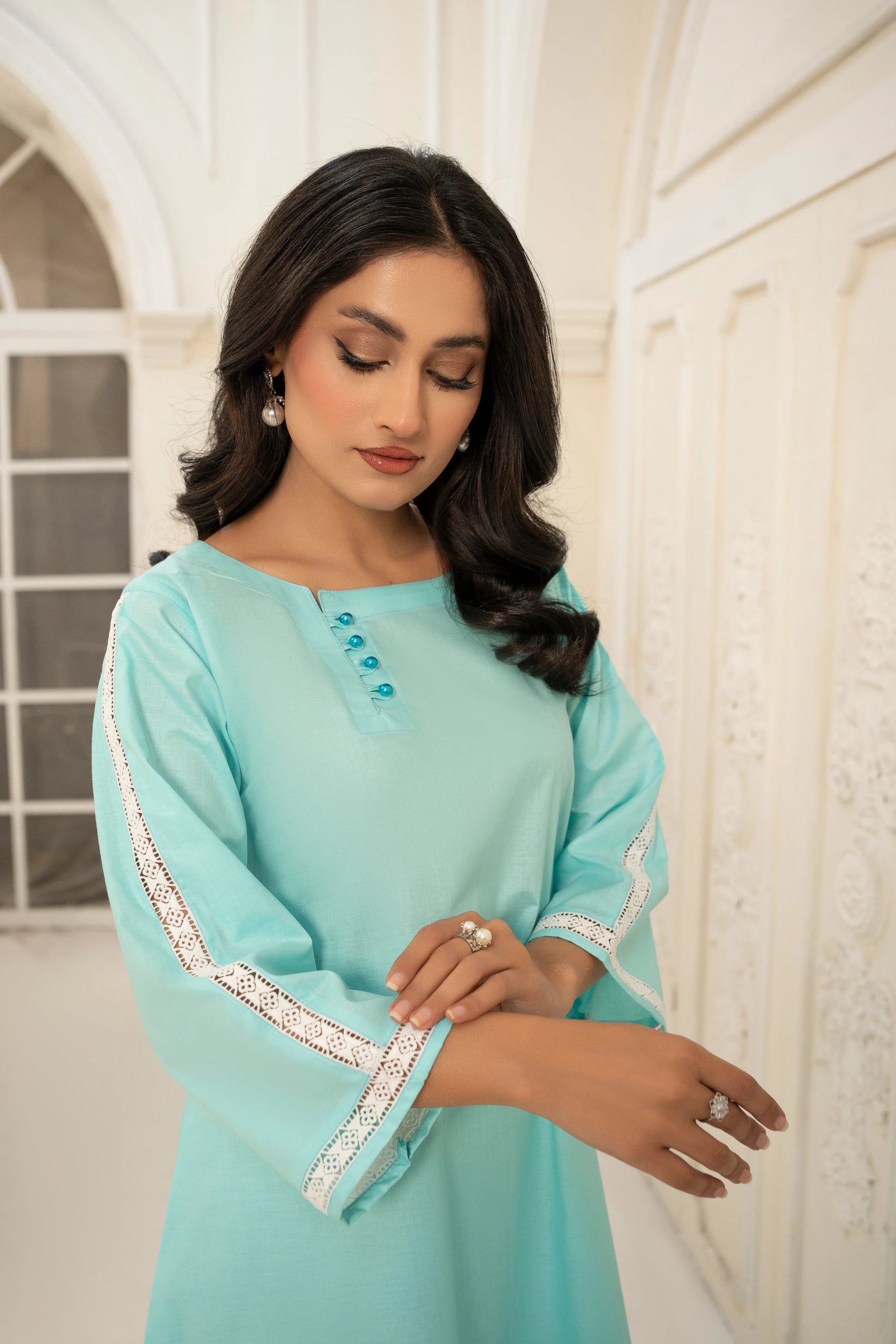 Design: Solid ice blue shirt with a modern, minimalistic look. Matching trousers for a sleek, coordinated style.