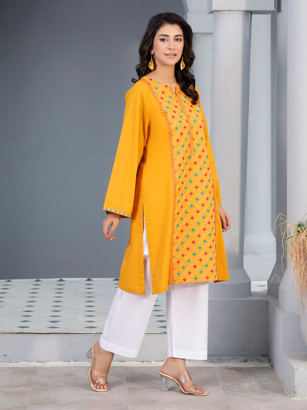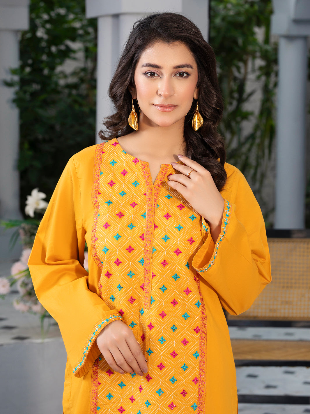 - Product: Yellow Embroidered Lawn Suit with White Trouser