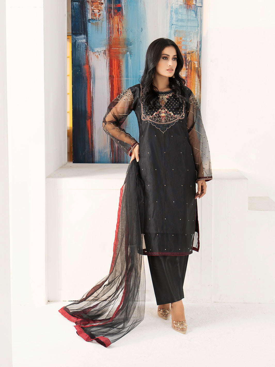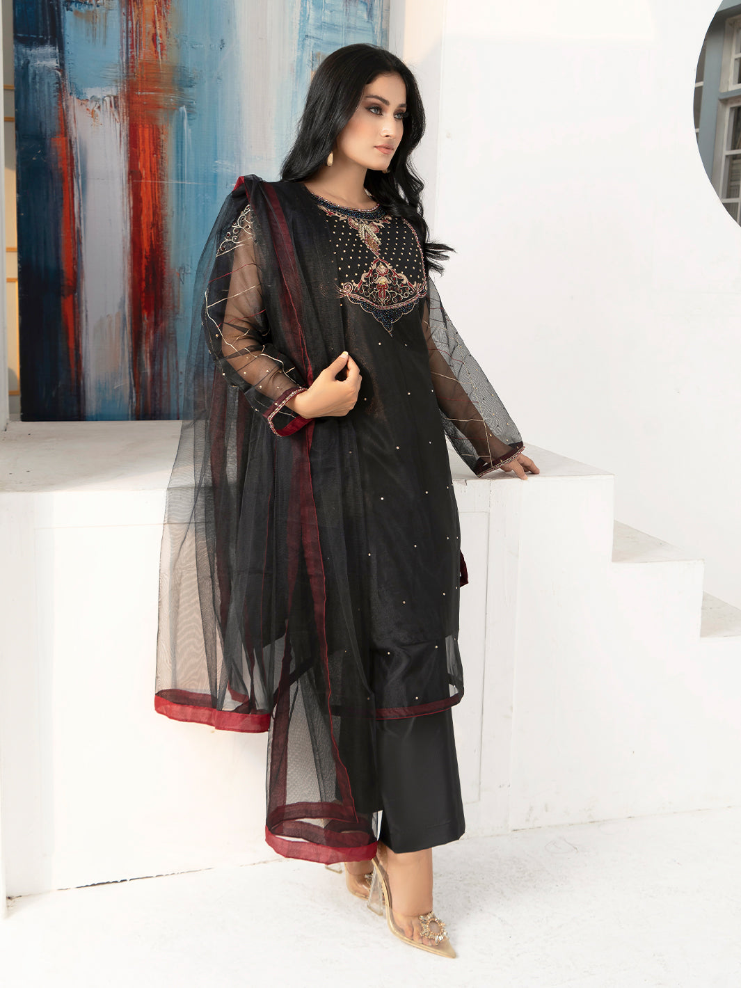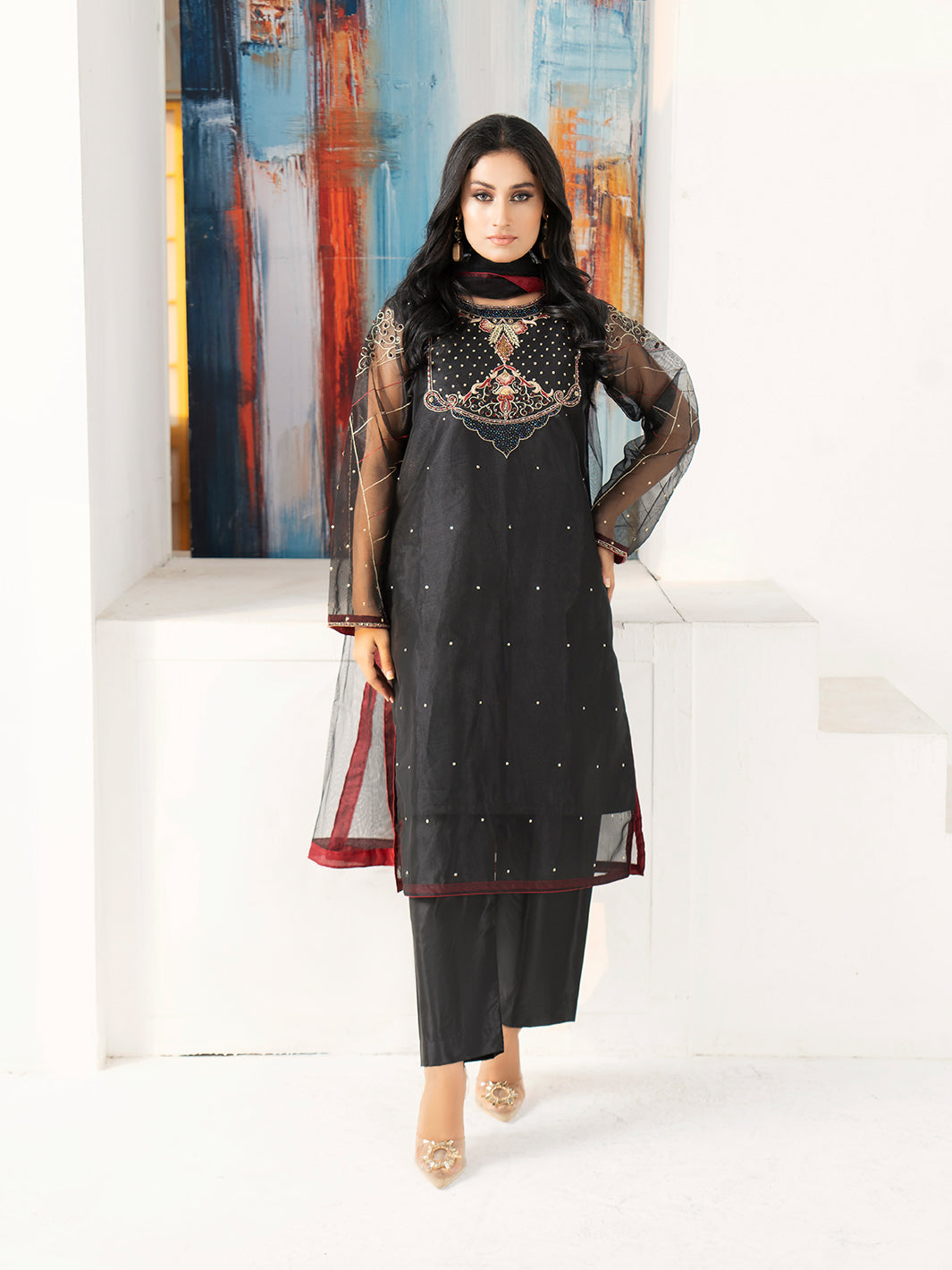 - Black shirt with intricate handcrafted details for a sophisticated look