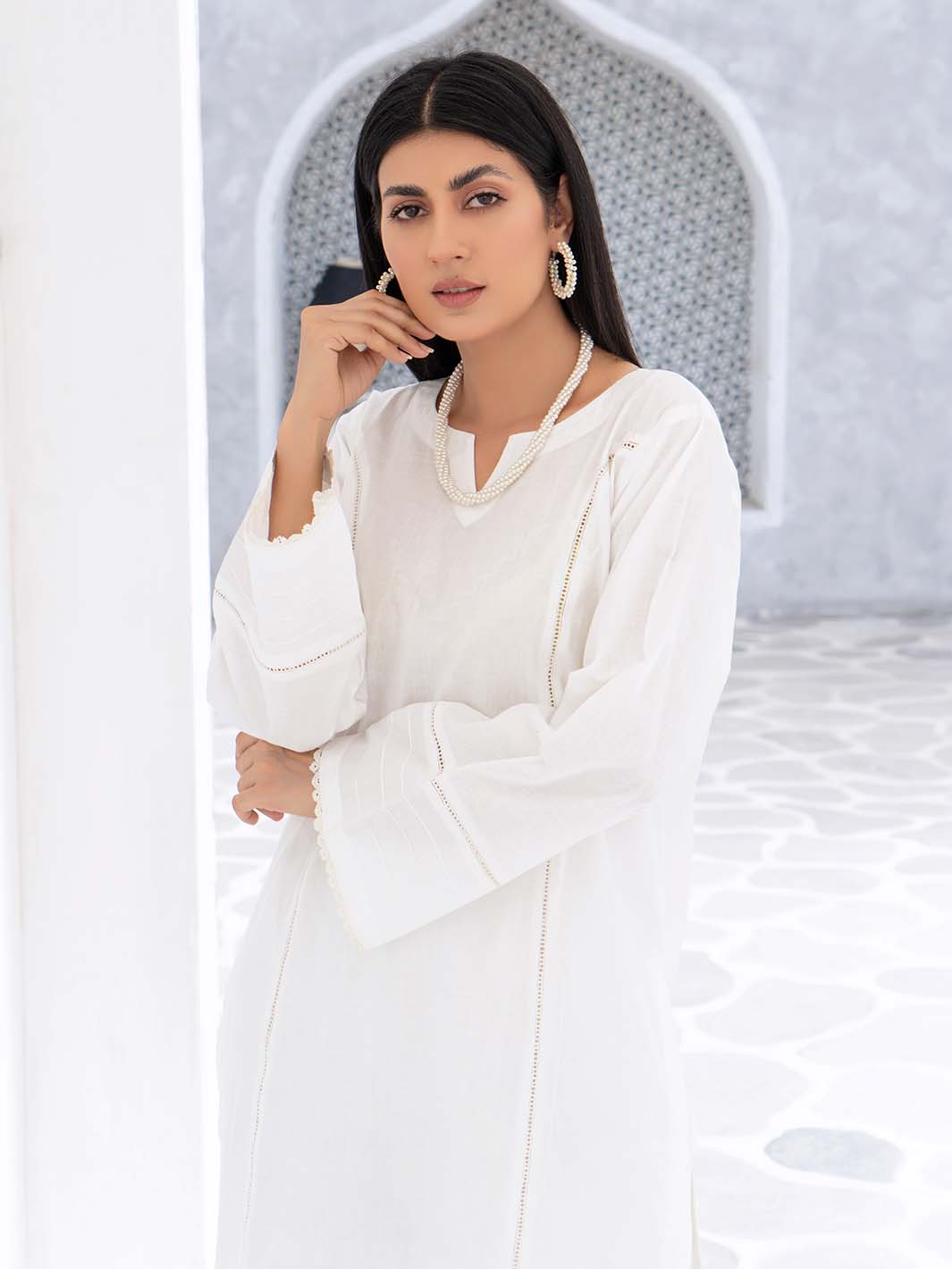 - Product: 2-Piece White Lawn Suit with Lace Work