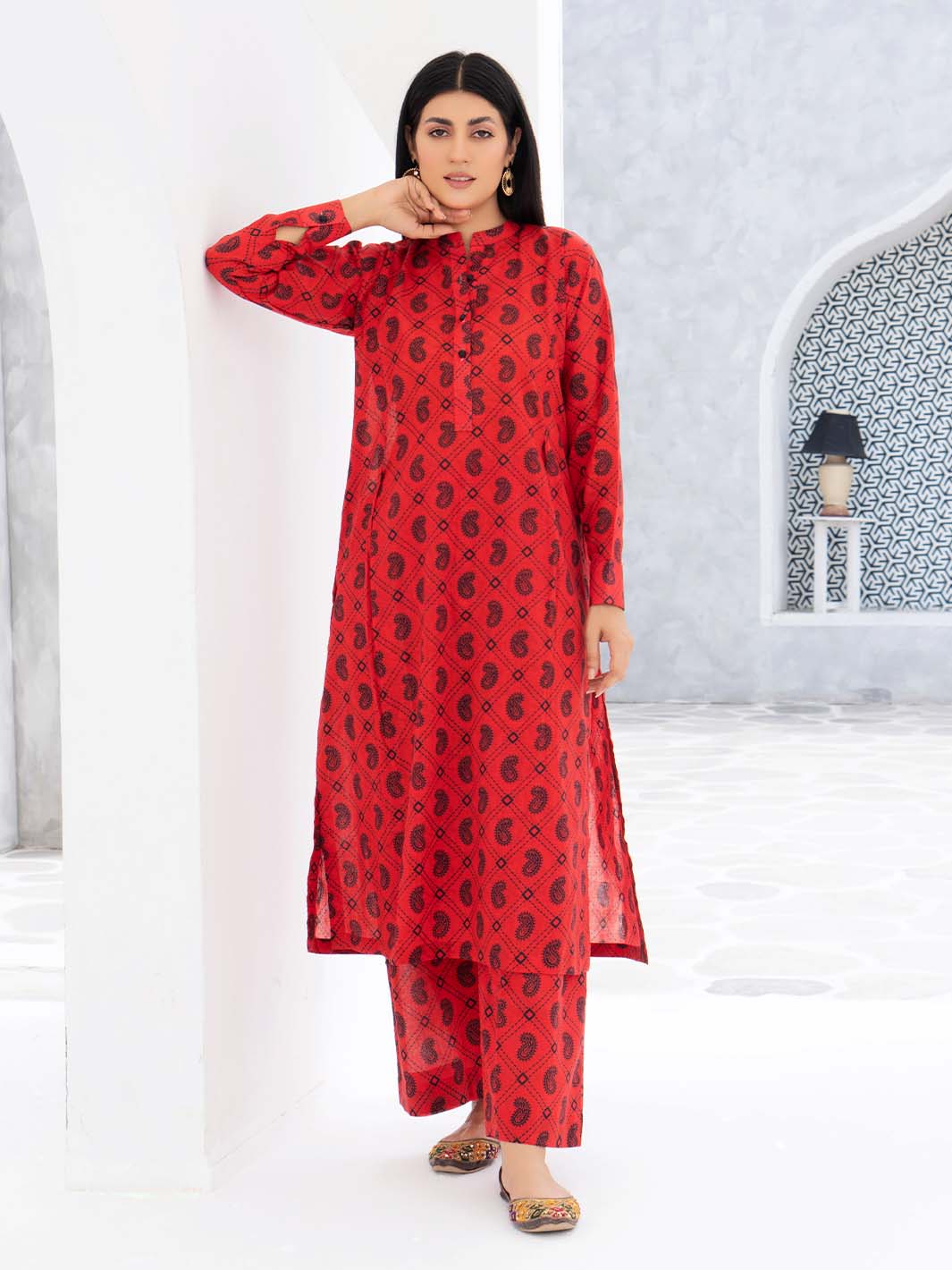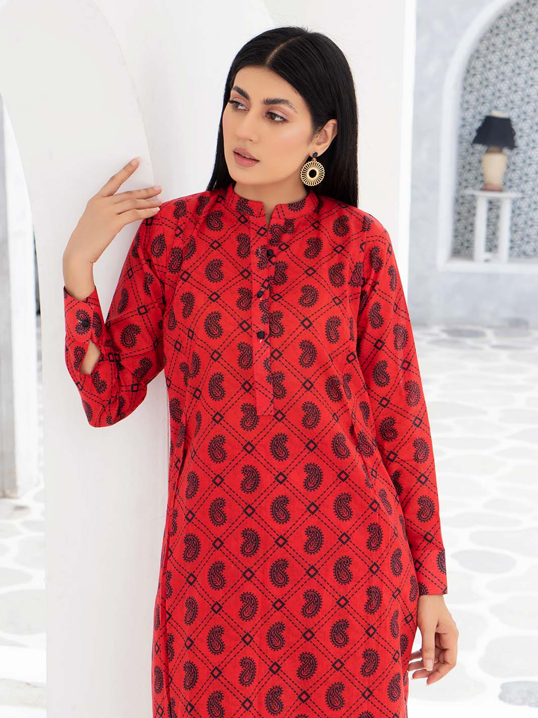 - Bold red shirt with a beautiful, detailed print for a striking look