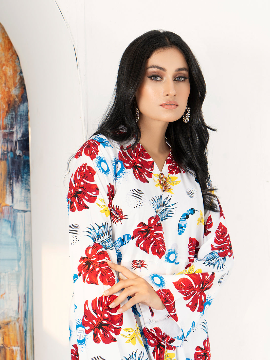 - Shirt with vibrant flower prints for a lively and elegant look