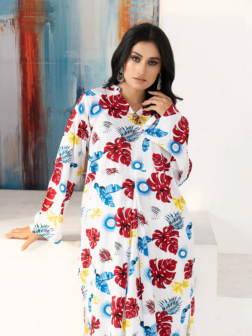 - Product: Boski Linen Flower Printed Suit with White Trouser